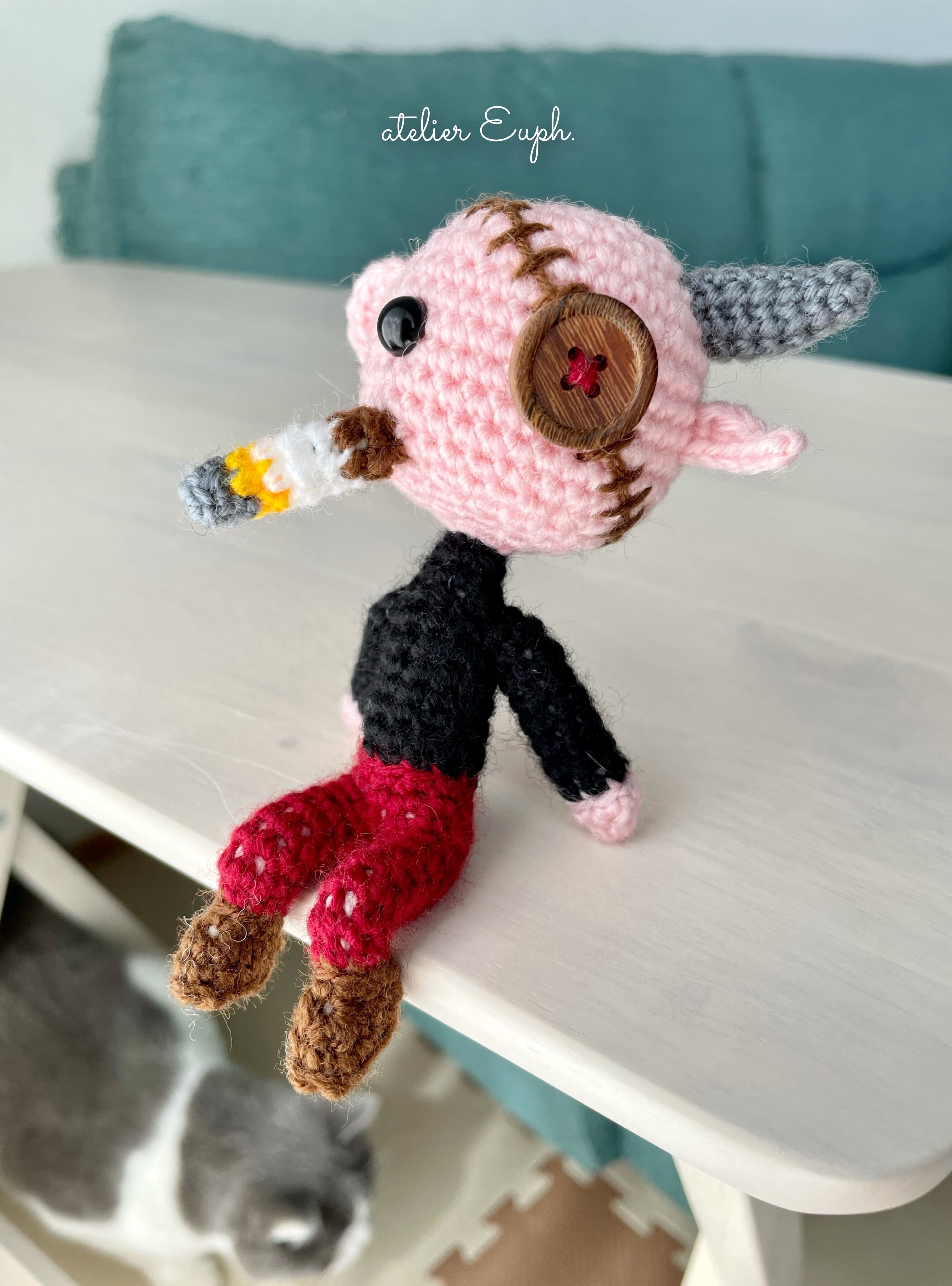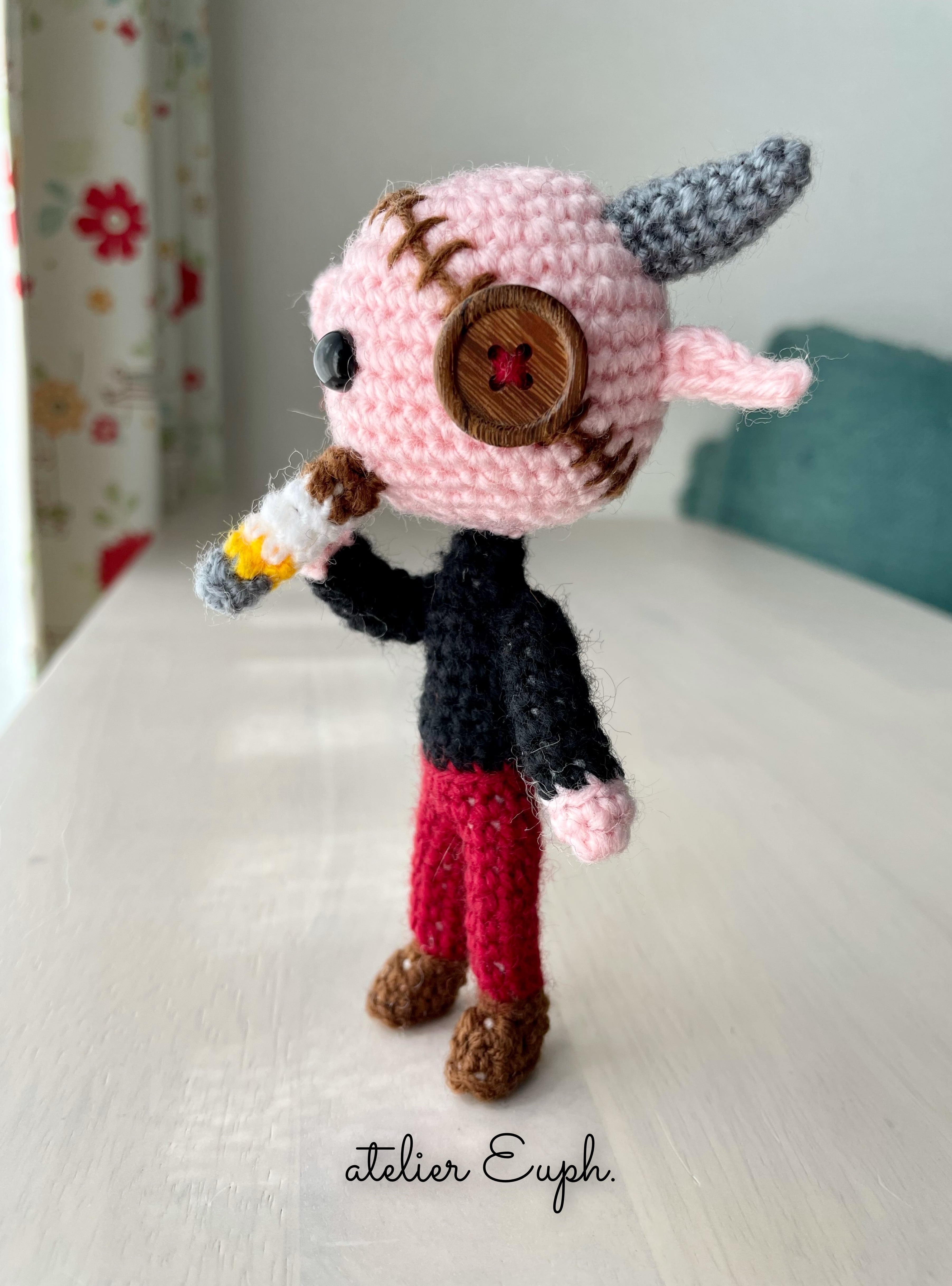 材料:毛糸、針金、木製ボタン、山高ボタン、抗菌防ダニ綿
